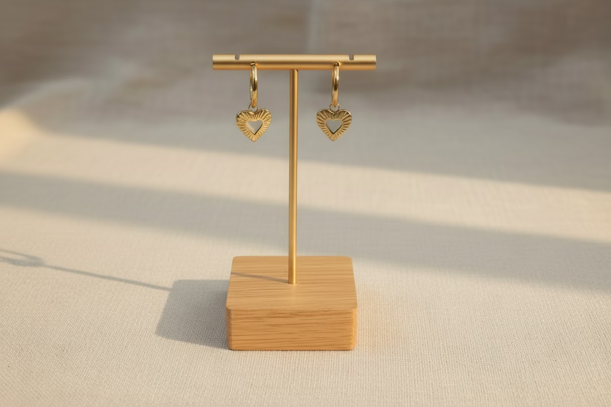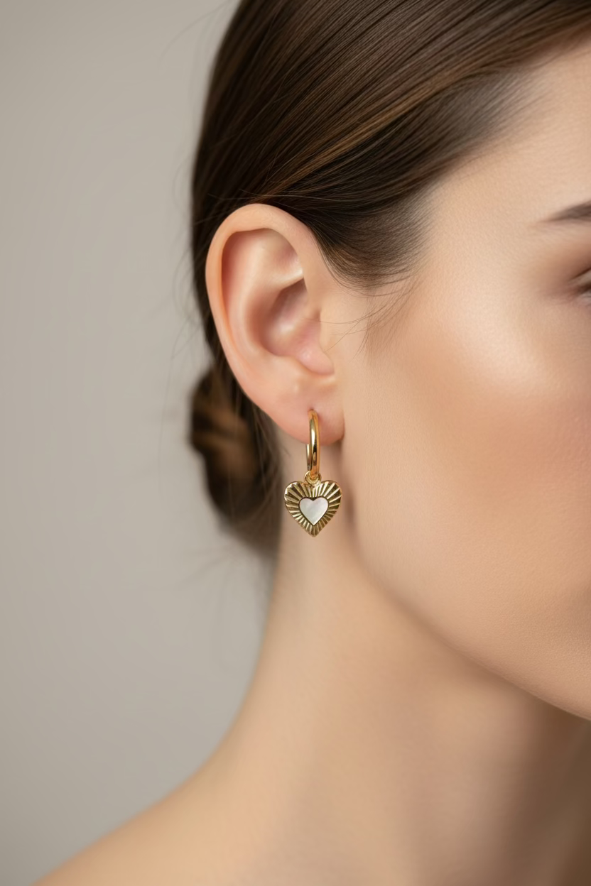 Boucles d’oreilles en acier inoxydable au design cœur, élégantes et intemporelles. Un bijou lumineux et durable, résistant à l’eau et pensé pour être porté au quotidien sans perdre son éclat.